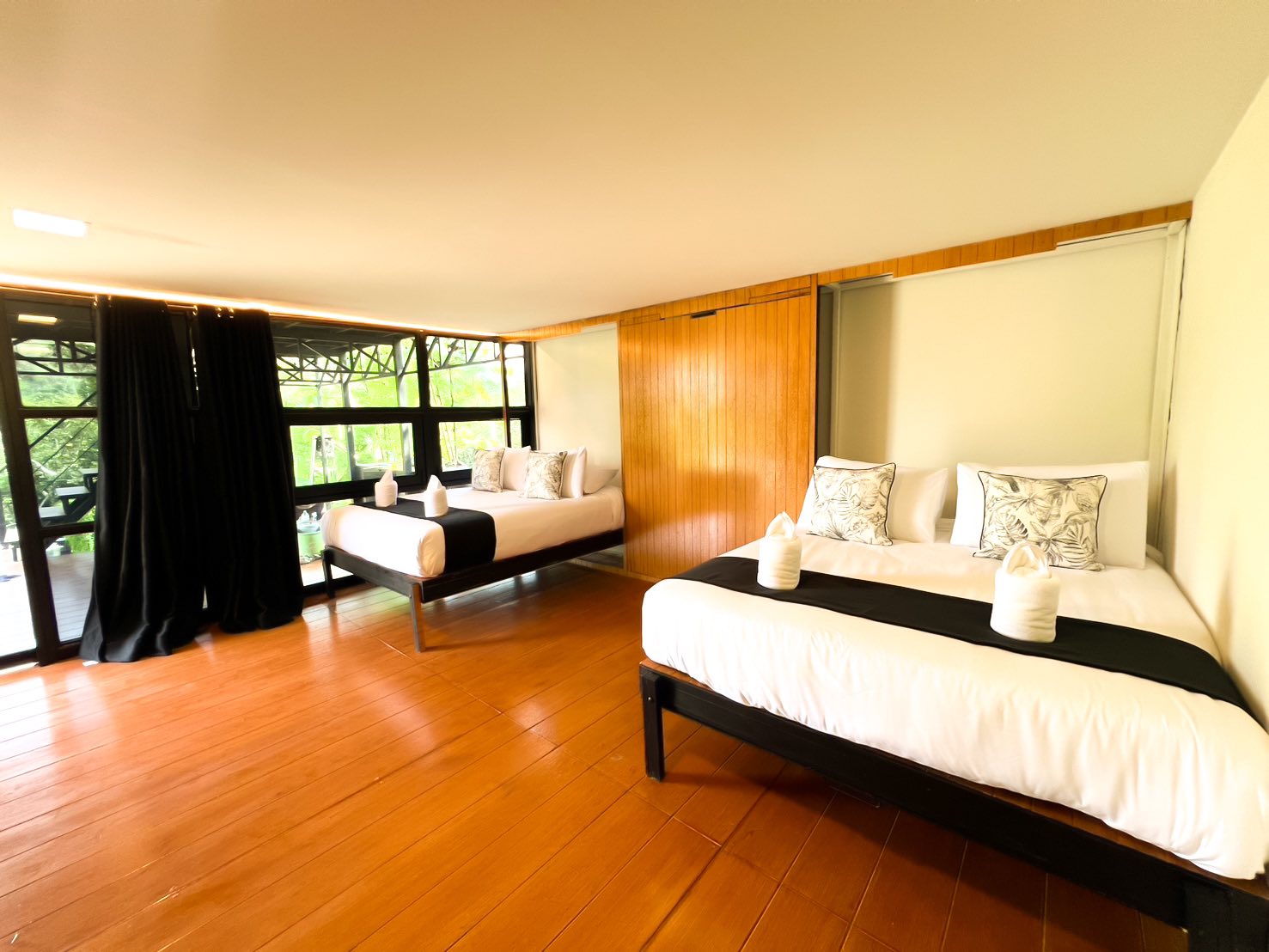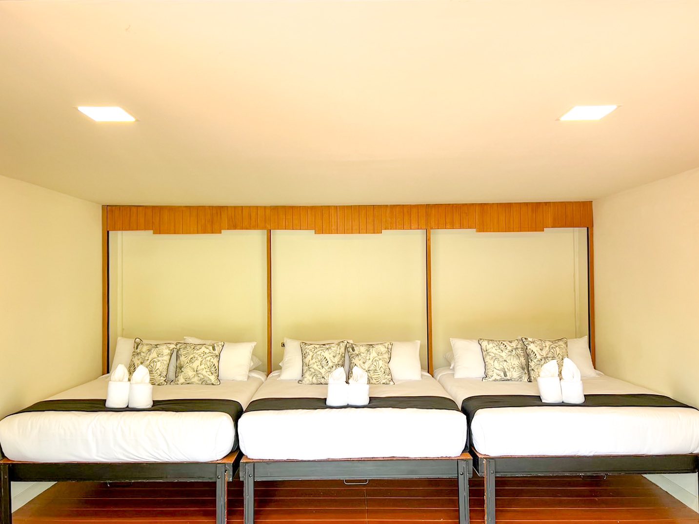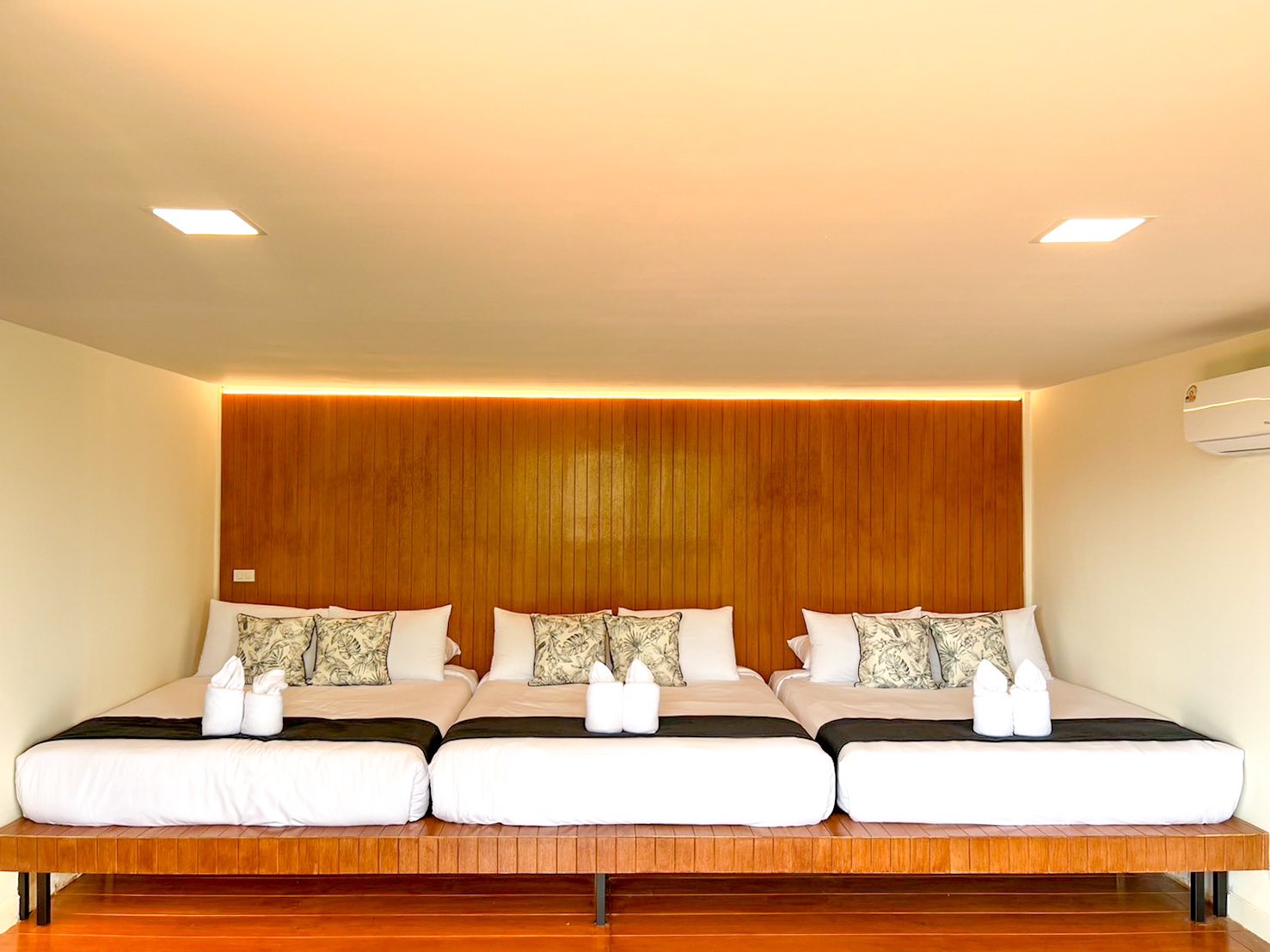 เด็กอายุ 0-7 ขวบ สามารถพักฟรีได้ 2 คน ไม่มีเตียงเสริม อาหารเช้า