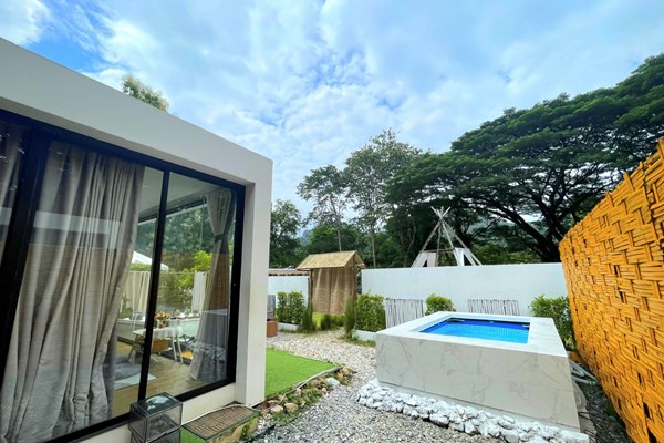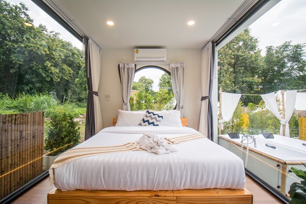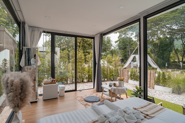 ิวด้านหน้าเป็นต้นไม้ใหญ่และภูเขา ตัวบ้านหันหน้าเข้าส่วนกลางของที่พักเหมาะกับการนั่งชิลหน้าบ้านในยามค่ำคืนได้เป็นอย่างดี